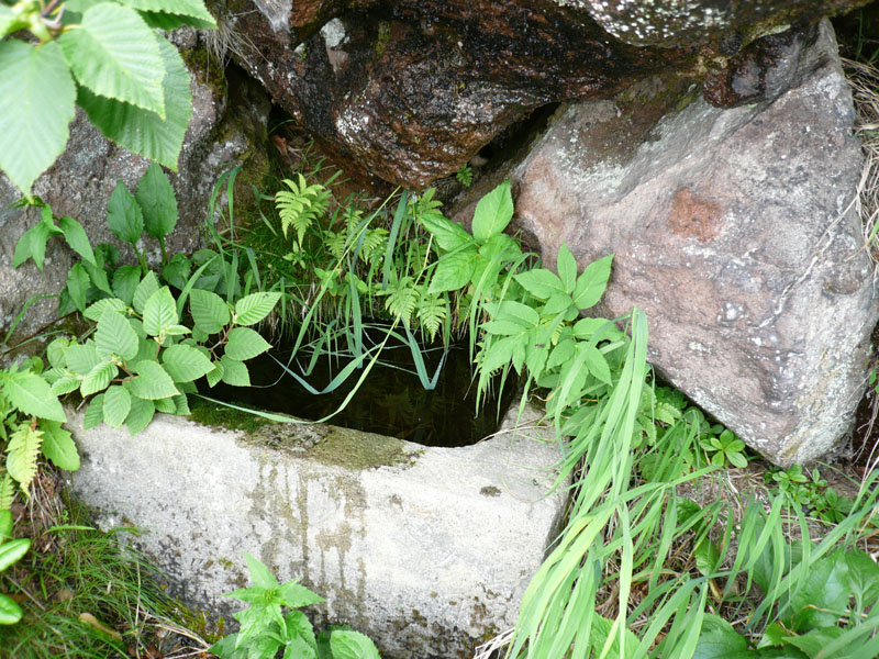 岩の隙間から染み出しているが、山頂なのになぜ。神秘的である。