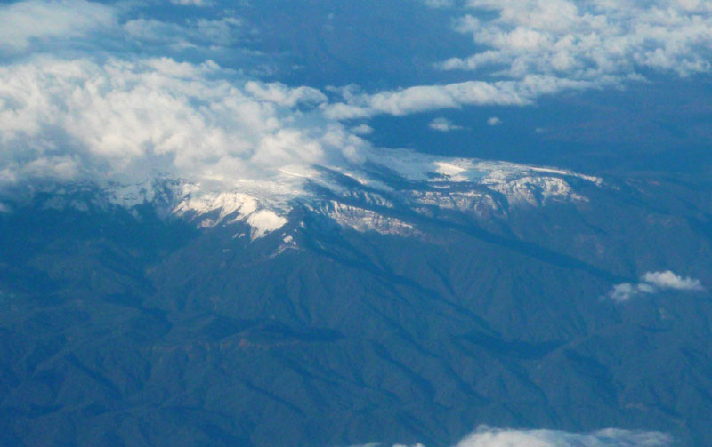 航空機から撮影した月山。