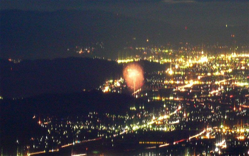 山の上から3箇所の花火大会を同時に見るとは、なんという贅沢!