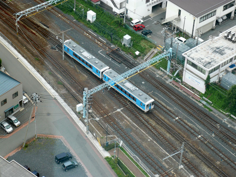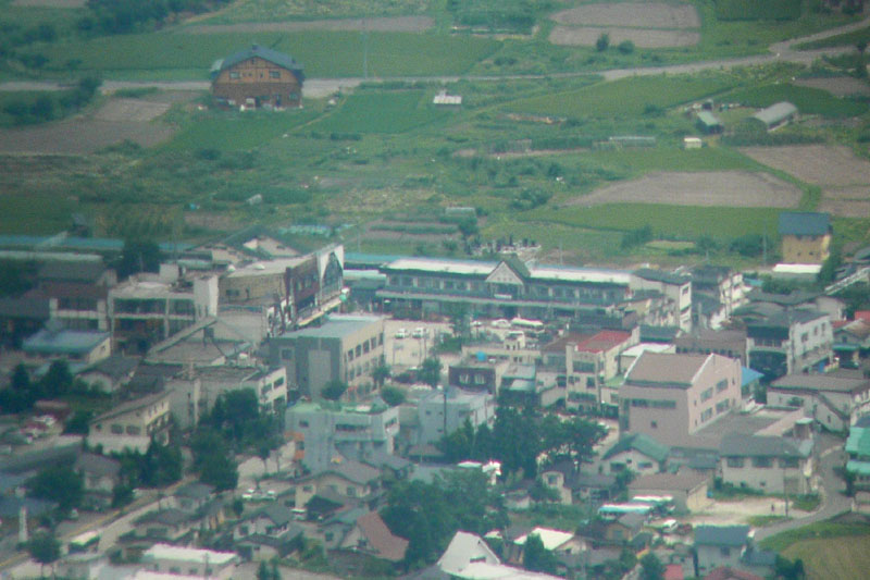 遠くには白馬駅が見える。28mm×20倍=560mm相当で撮影。