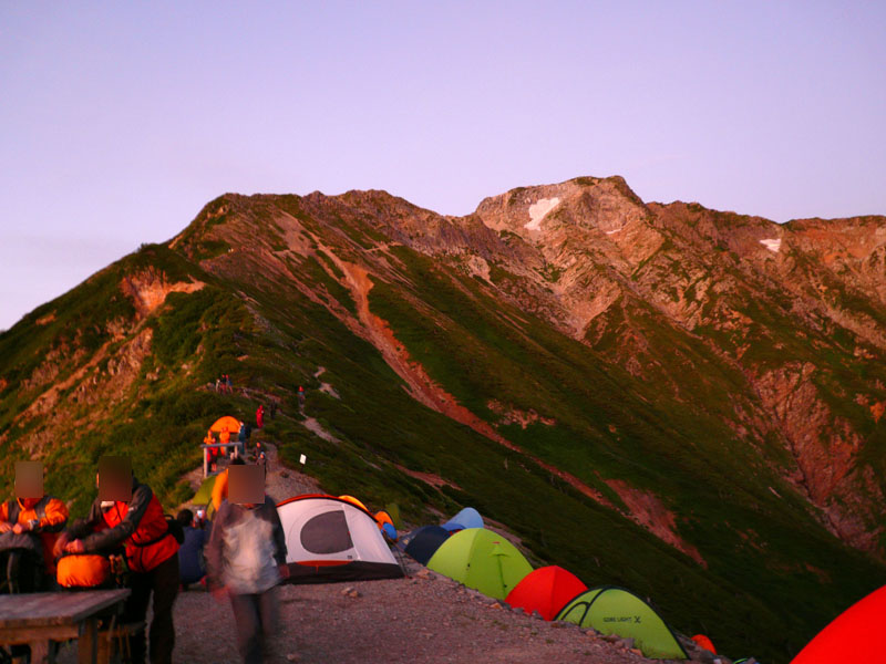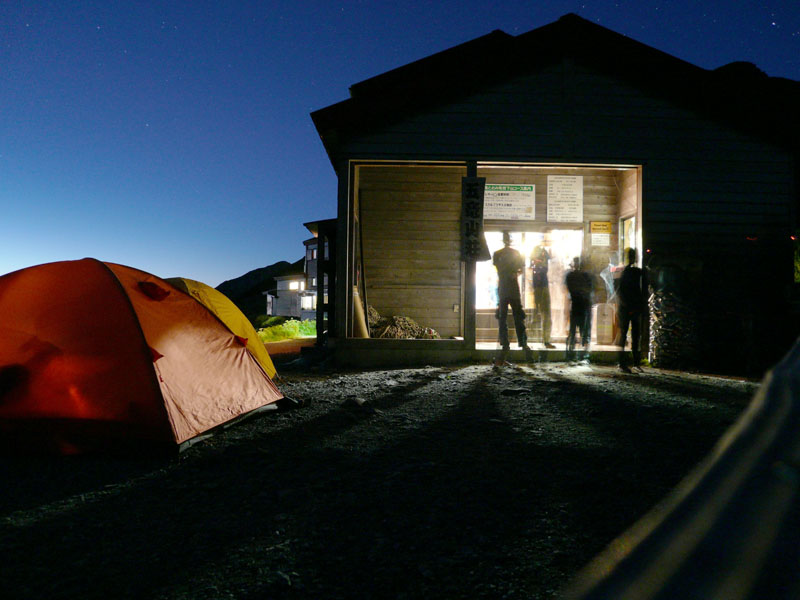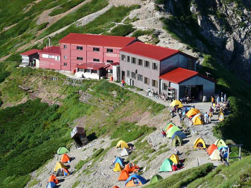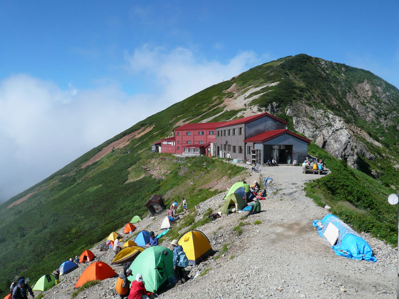 五竜山荘に到着、多くのテントが設営されている。