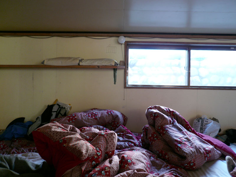 掛け布団は6枚しかないので、2人のパーティが1枚の布団で寝ていた。