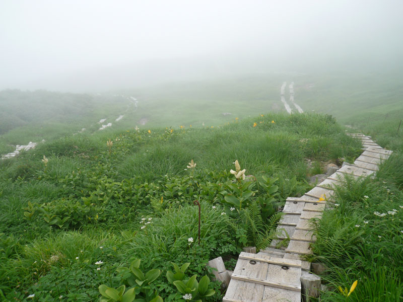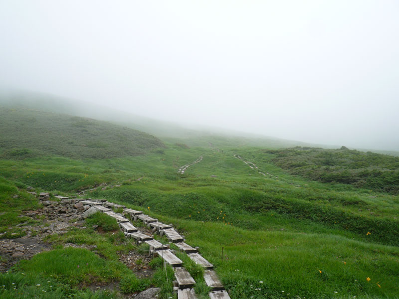 登山道はほぼ全線木道もしくは石畳で舗装済。