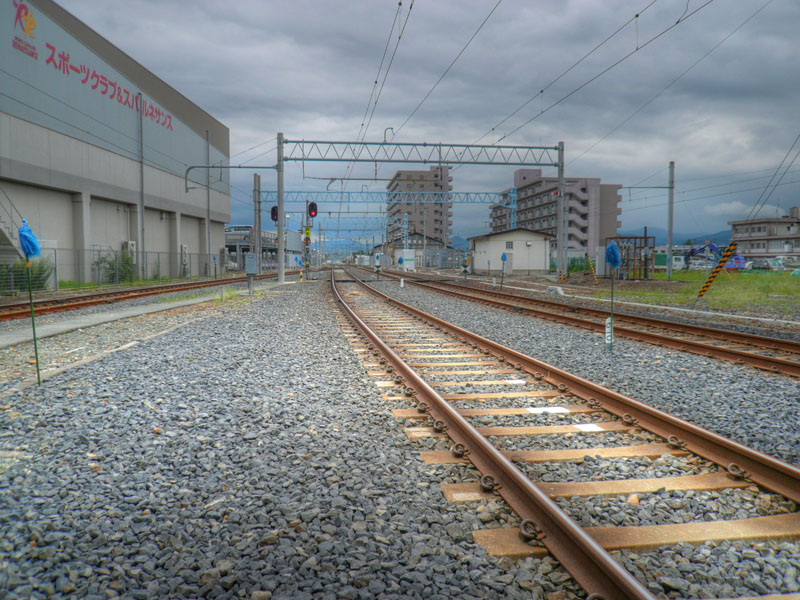 線路は標準軌と狭軌が入り乱れている。一番→だけ標準軌である。