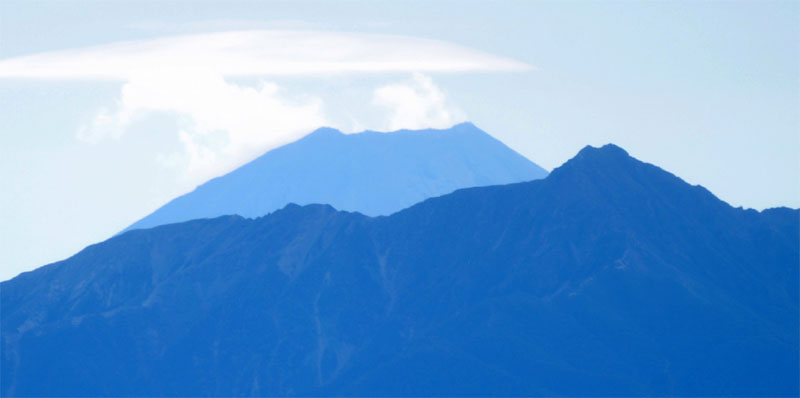 あまりに離れすぎると高い山しか見えないが、高い山は日本の中央部に集中しているので、
