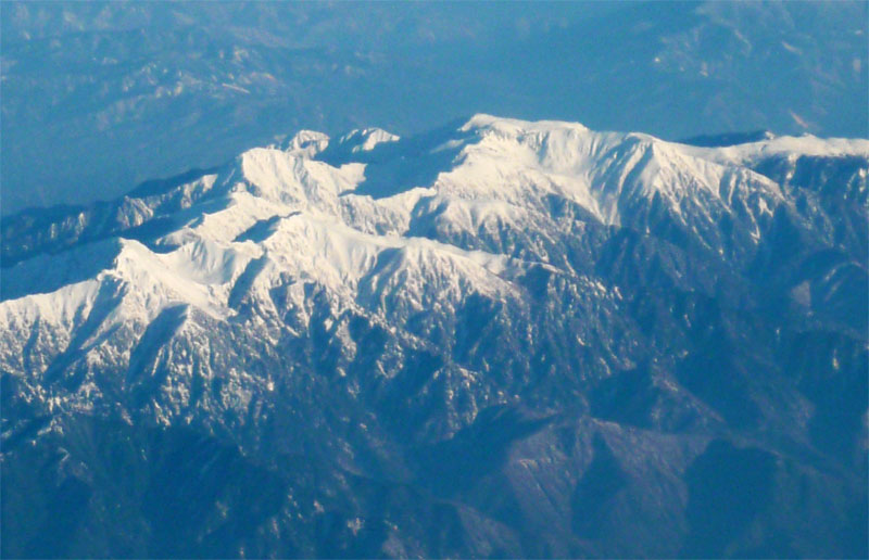 手前の谷は伊那谷。奥の雪山群は北アルプス。