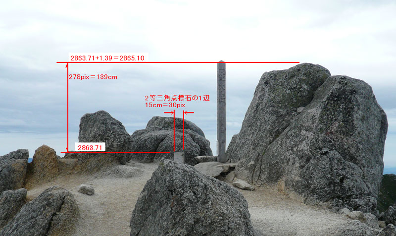 そうであれば世間一般に通用している高さ2864mより1m高い表記になる。