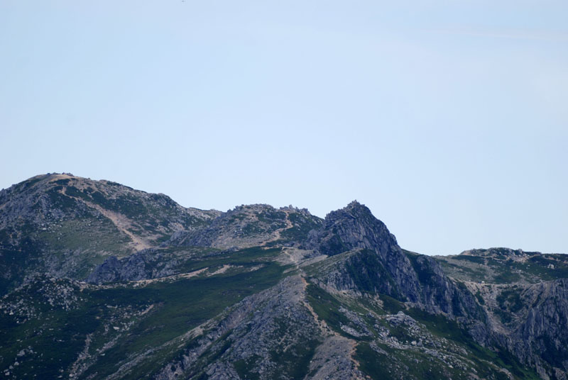 木曽駒(←)と宝剣岳(中央→) 距離7km。