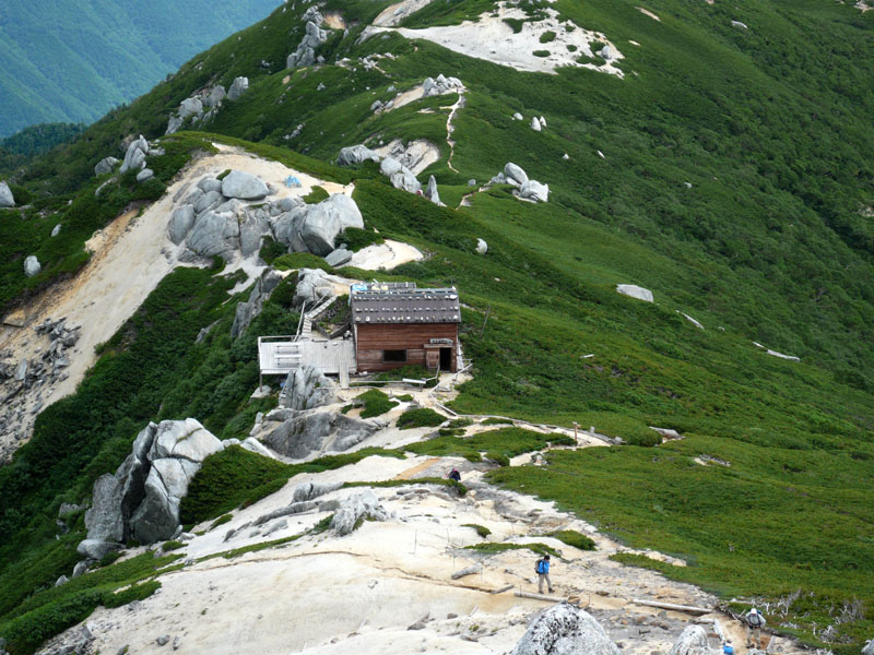 このルートは、登山口から近い場所(1時間)に避難小屋が2つもある。