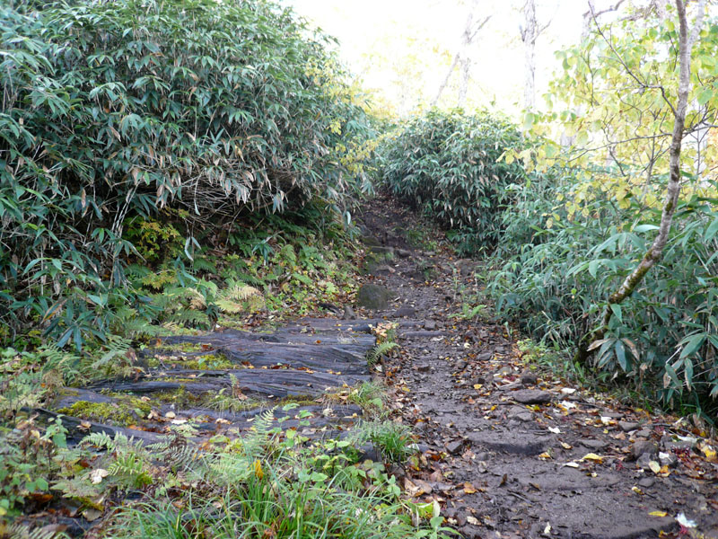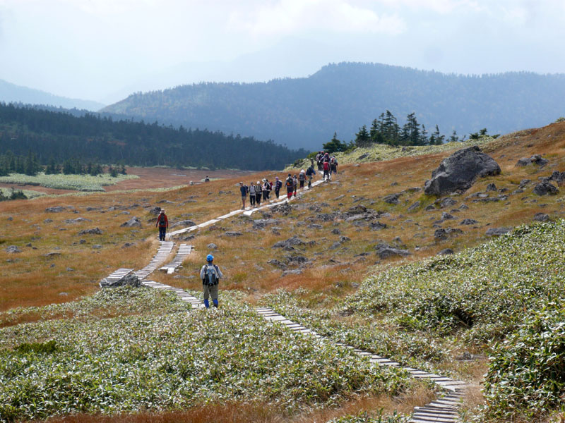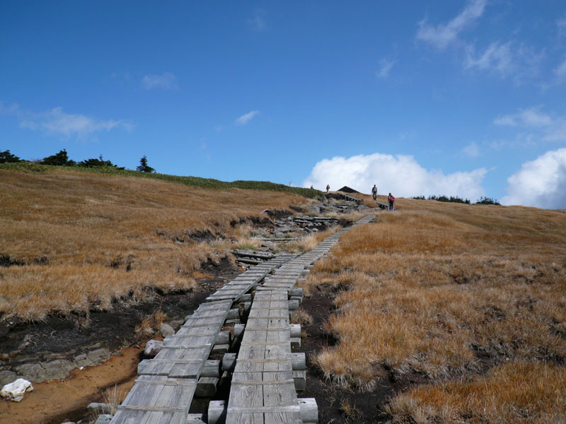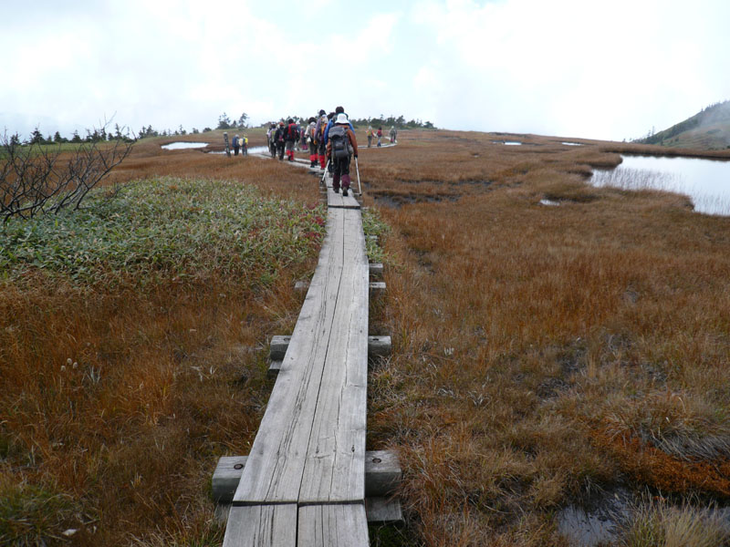 いきなり湿原に出る。急登と湿原のギャップに誰しもがびっくりする。