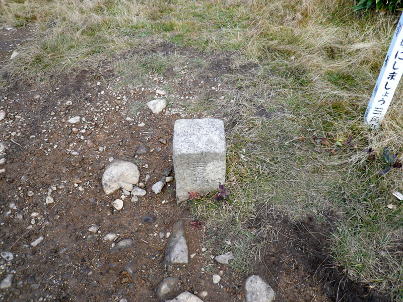 山頂はこちらであるが、山頂は展望が無く標識と1等三角点があるのみである。