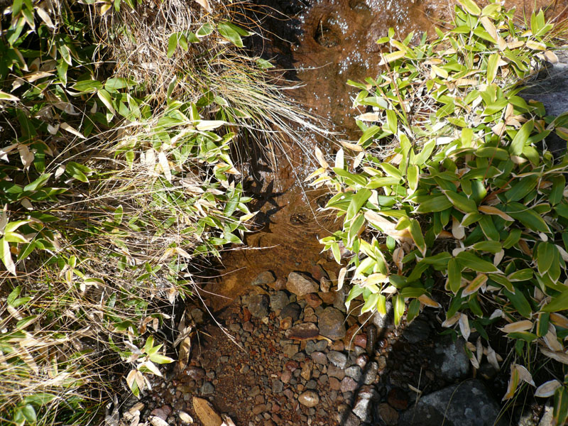 頂上直下から流れ出す謎の湧水。なんなんだろう。