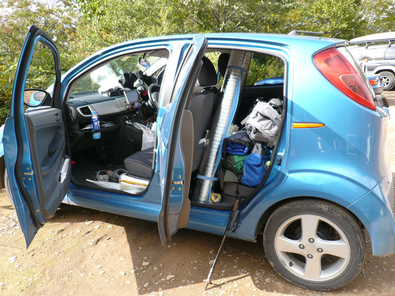 後部座席に入っているのはテントマット。200cm×150cmでテントのサイズにぴったりである。