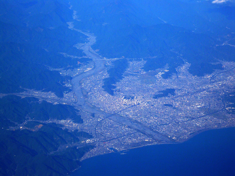 航空機から見た静岡市。