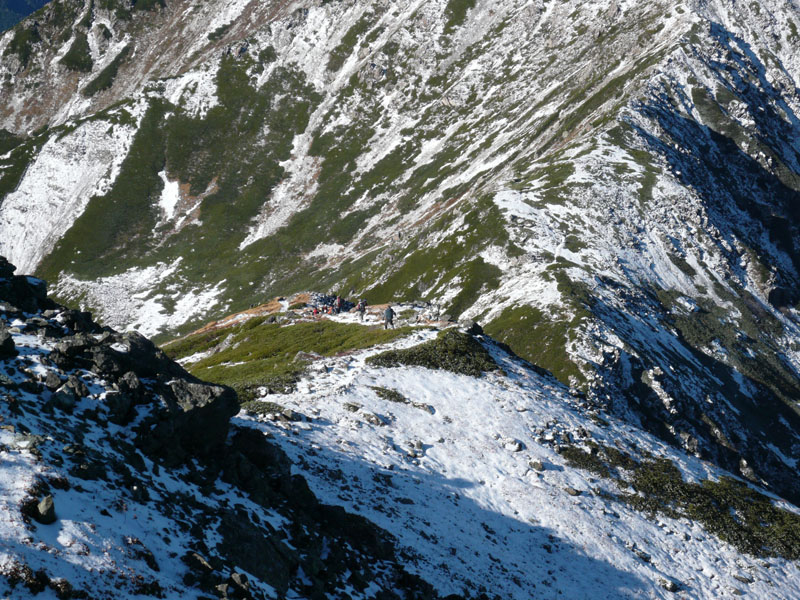 荒川岳の下りをゆくパーティ。