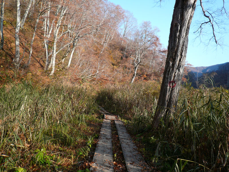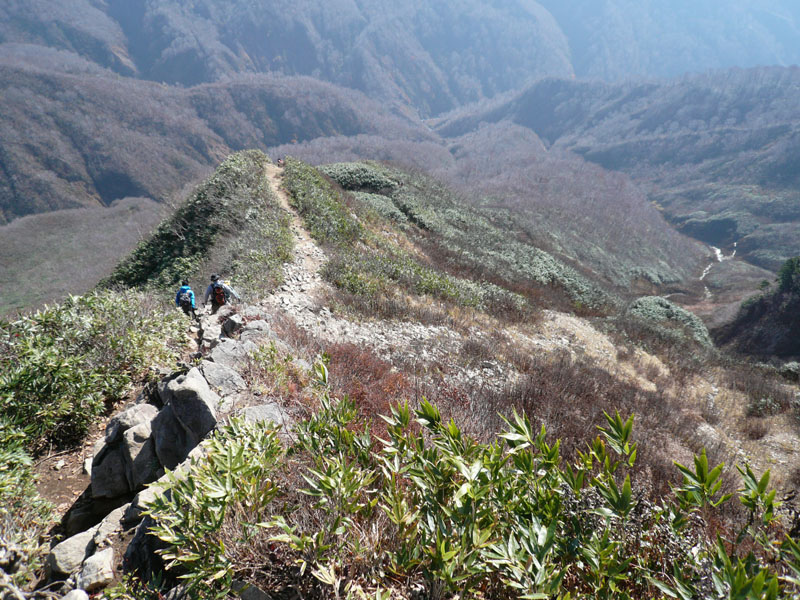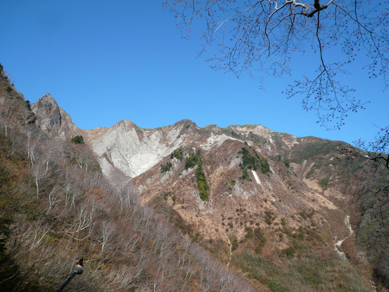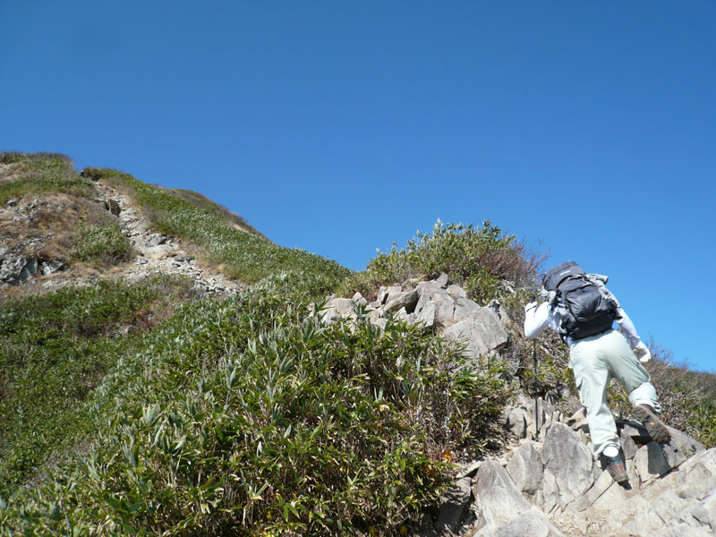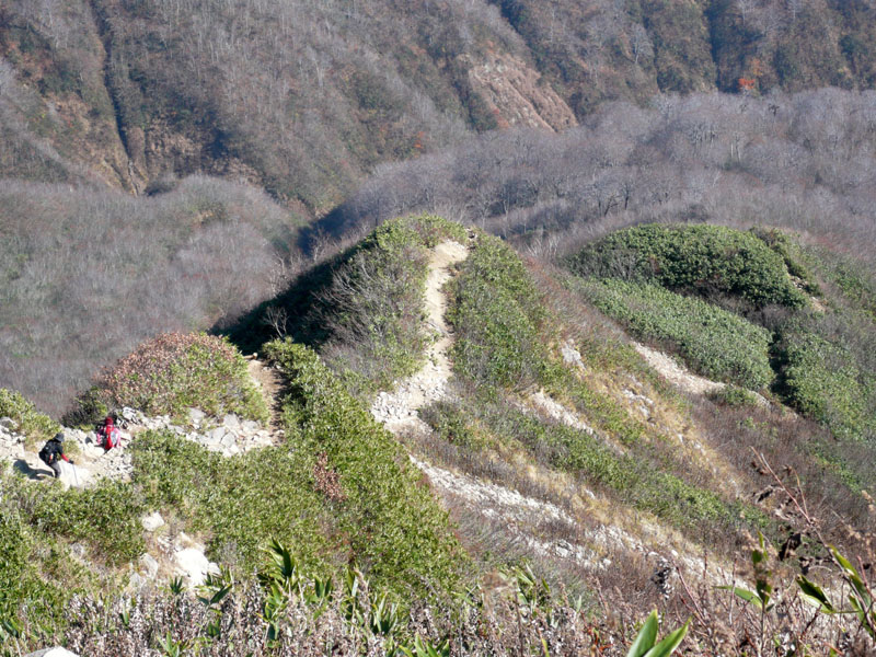 雨飾山直下は激しい岩場になっており、布団菱という名前がついている。