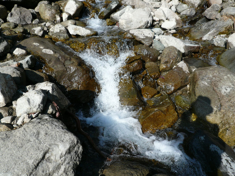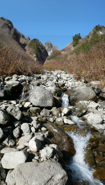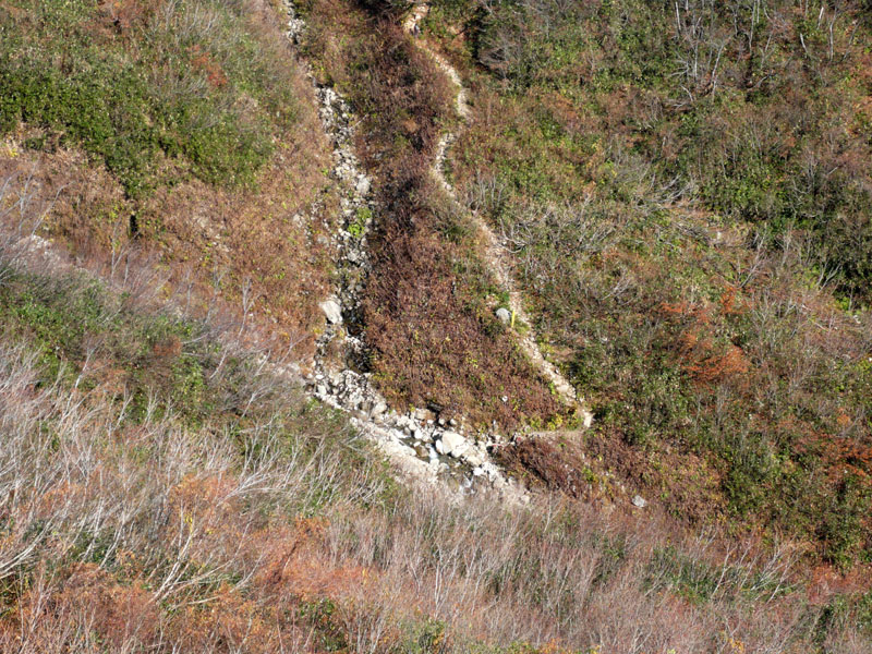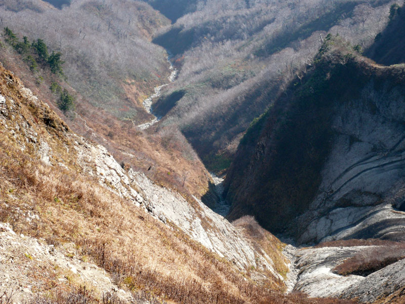 真下を見下ろすとこんな感じ、かなり急峻な沢である。