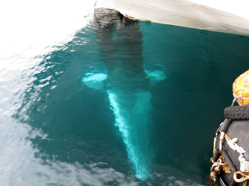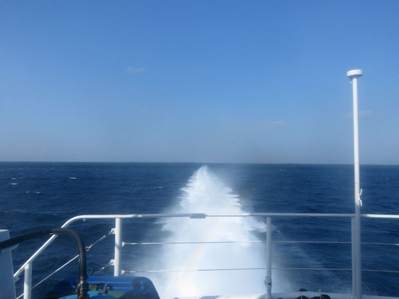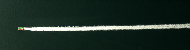 20ktくらいの低速船よりも相当に長い航跡となる。