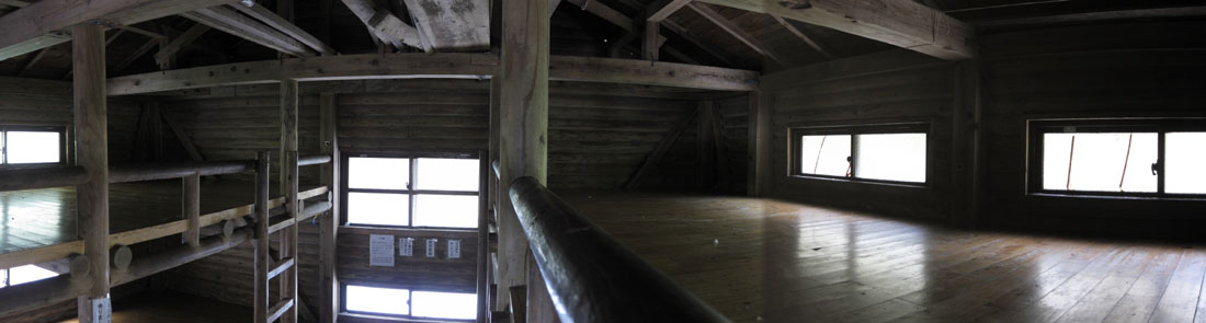 船内の柱に衝撃吸収用のウレタンマットが巻かれていたり、