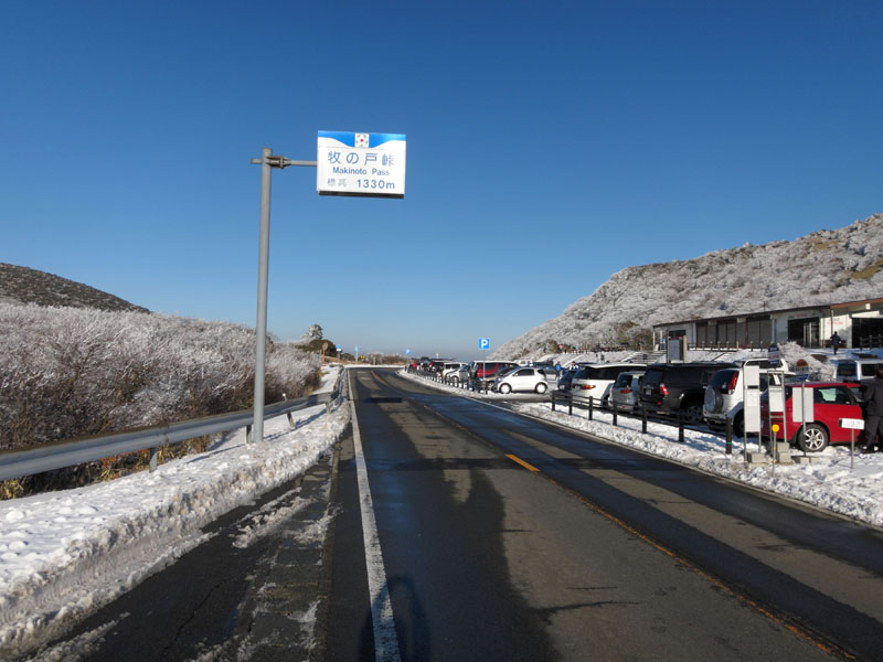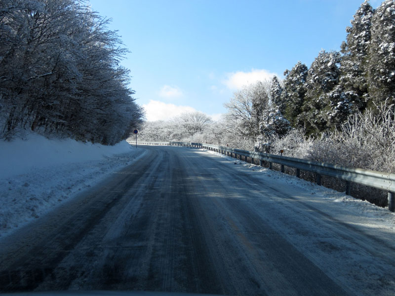だがさすがに標高が高いだけあって、県道は雪&凍結で真っ白になっている。