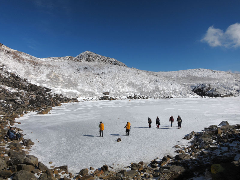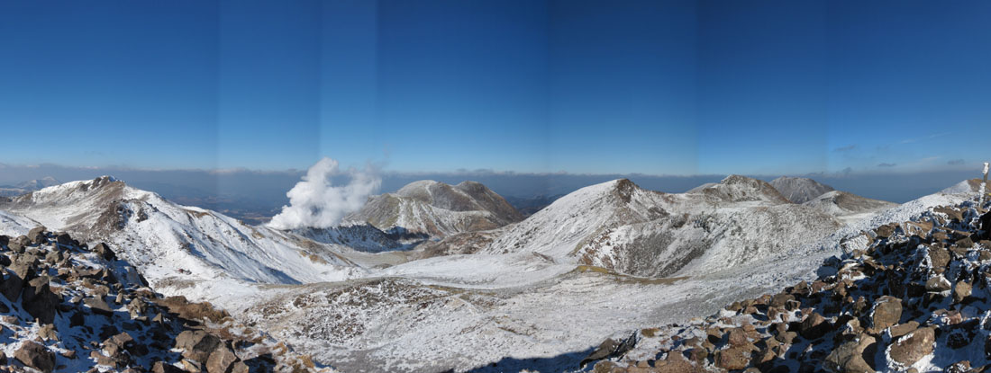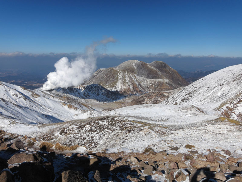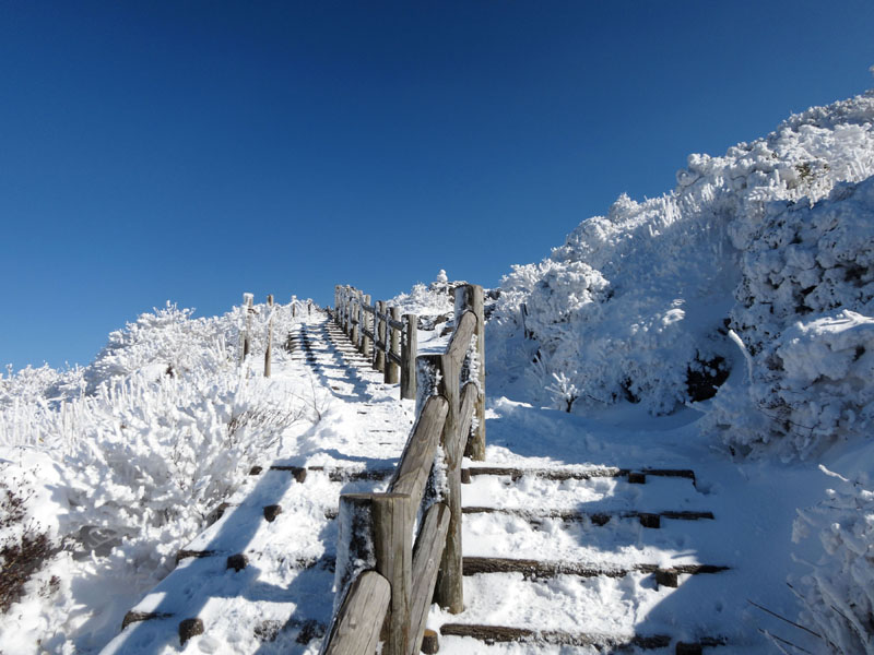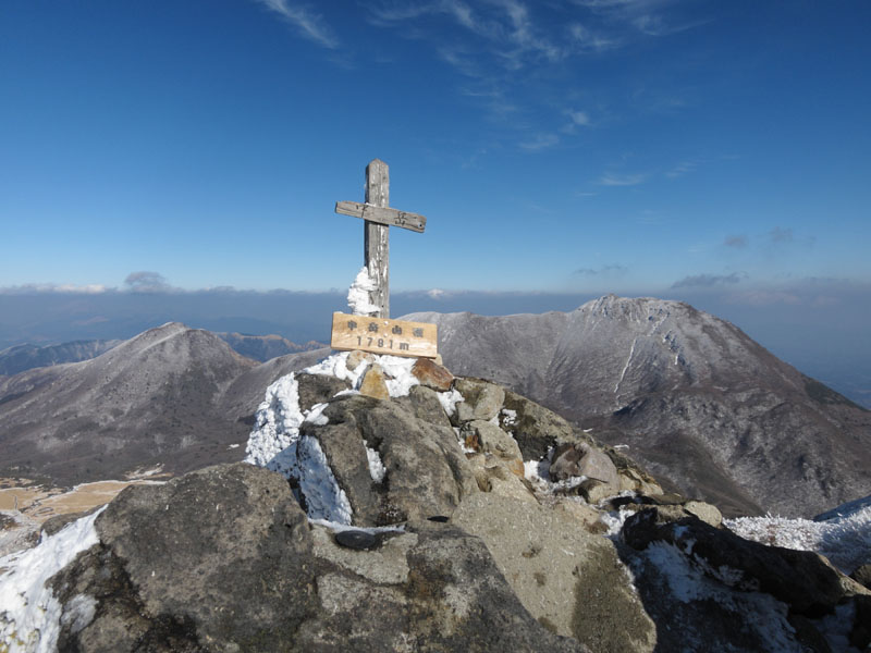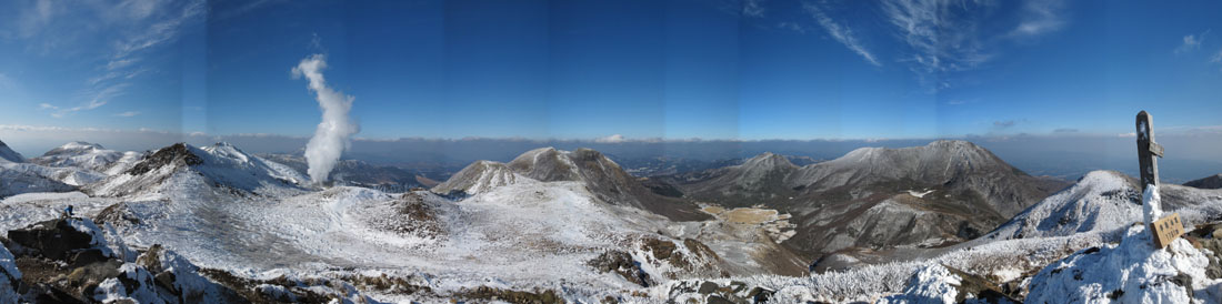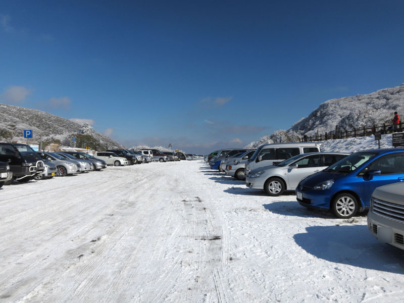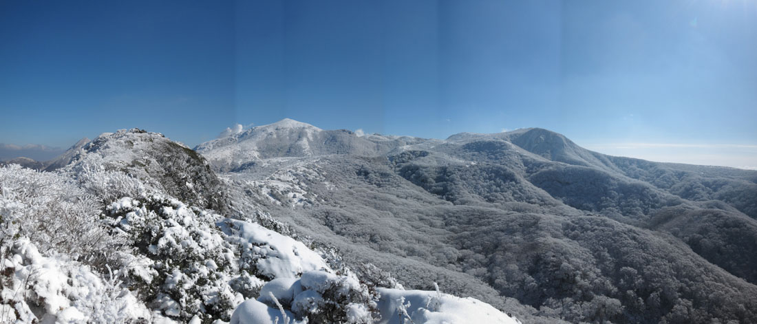 九州本土最高峰ということで、日本海側の季節風があたるために降雪量は多い。