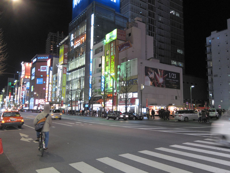鉄道路線沿いに高い建物が連続して続いているのが良くわかる。
