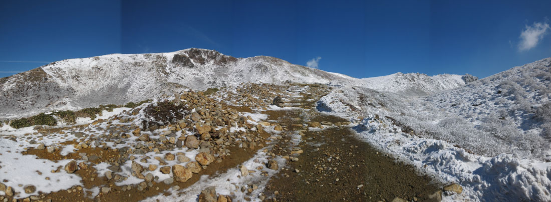 雪のくだりは僕の得意とするところで、アイゼン装着しながらすべり降りるように下り、
