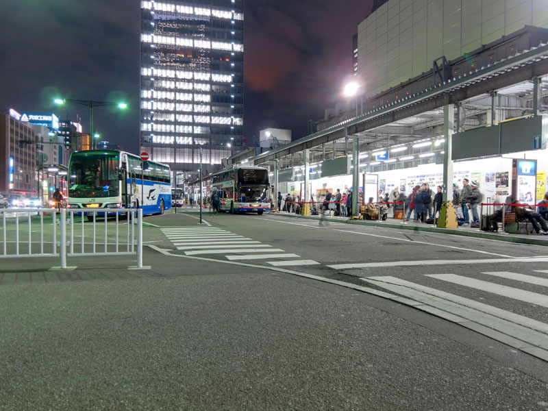 東京駅の高速バスターミナルは多くの人で賑わっている。