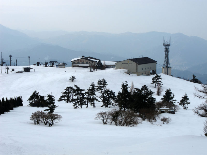 休業中のスキー場施設が見える。