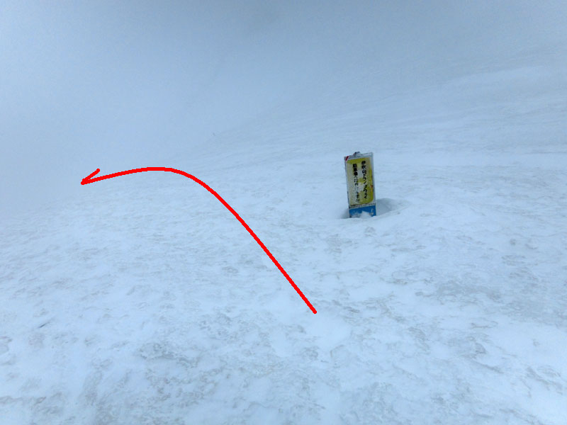 山頂はホワイトアウト、視界10mである。