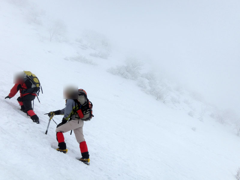 アイゼン・ピッケルで完全装備である。