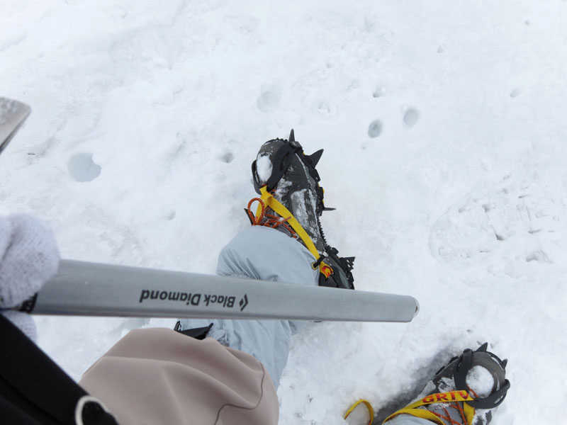 アイゼンを地面に蹴り込むと速やかに止まるが、