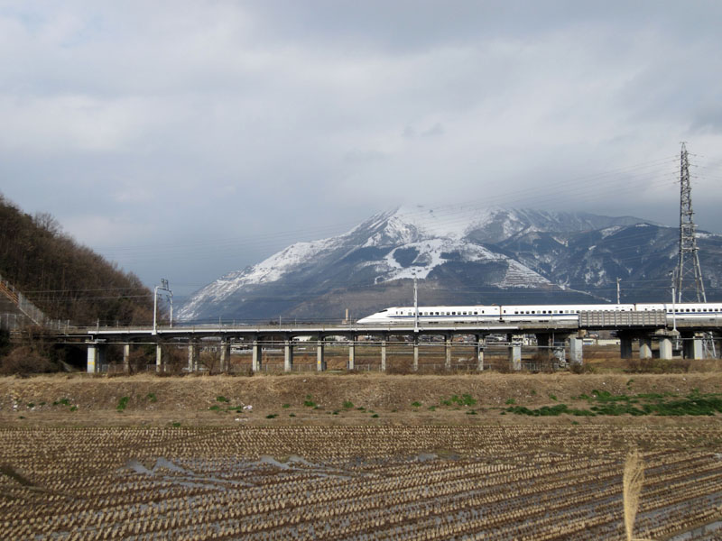 東海道新幹線はちょうど伊吹山の南を通過するが、