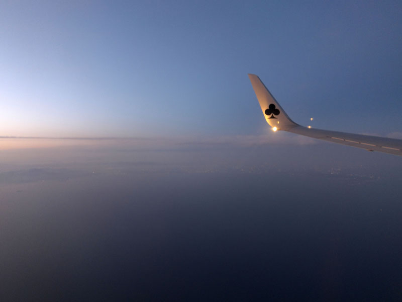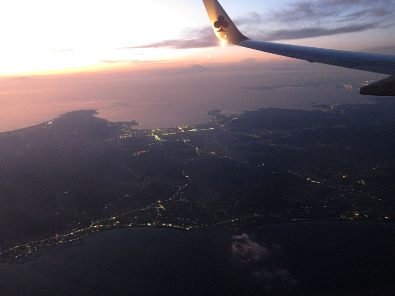 また少し眠り、外を見ると進行方向左側に眼下に夜景が見えた。
