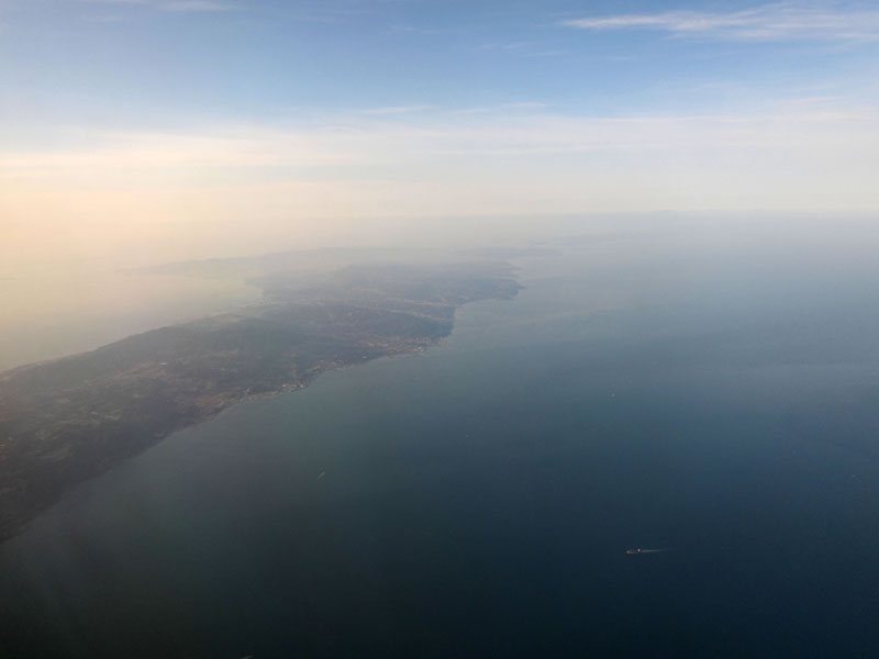 四国の室戸岬沖から北方向に向かって撮影したもの。