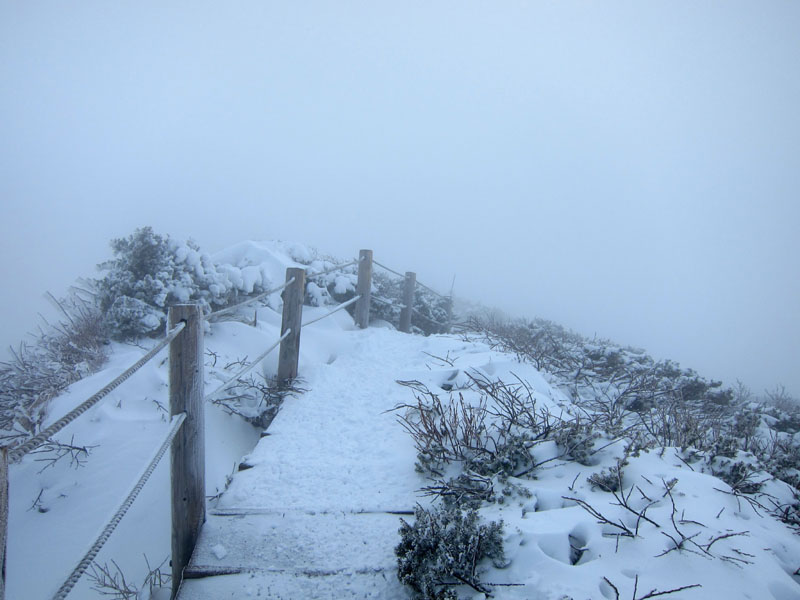 厳冬期で積雪が多く木道が埋まって見えない+視界がない状況だと、