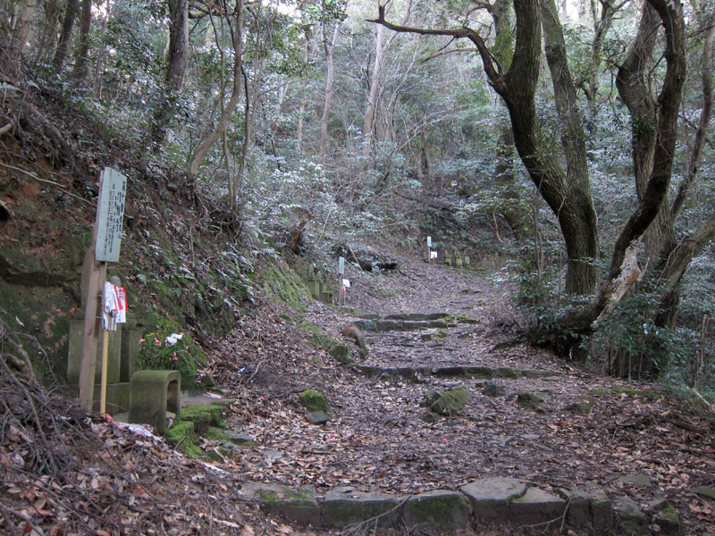 弥山から剣が峰までのルートは激しく崩壊しており通行不能である。
