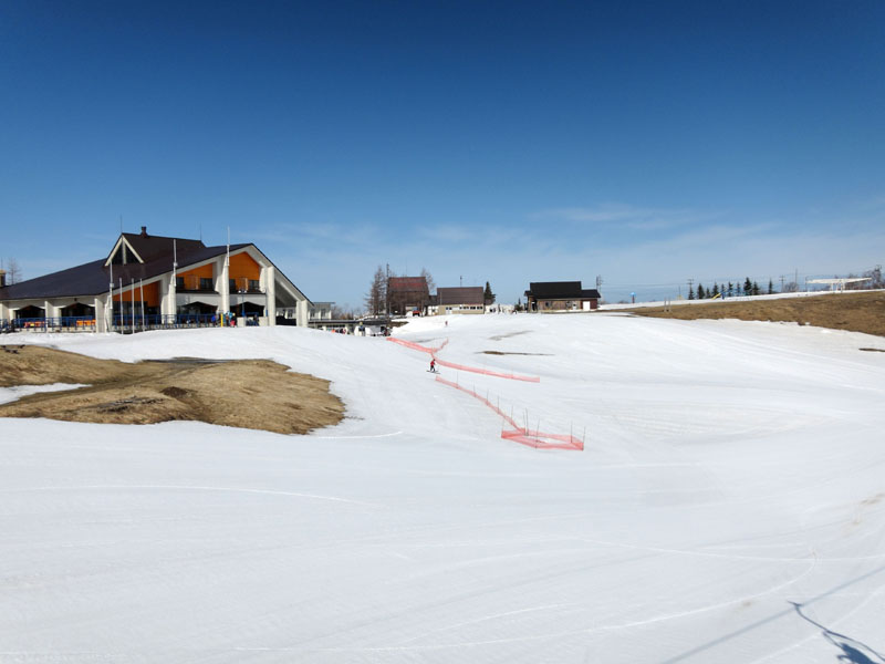 帰りはスキー場のゲレンデをシリセードで滑走するが、