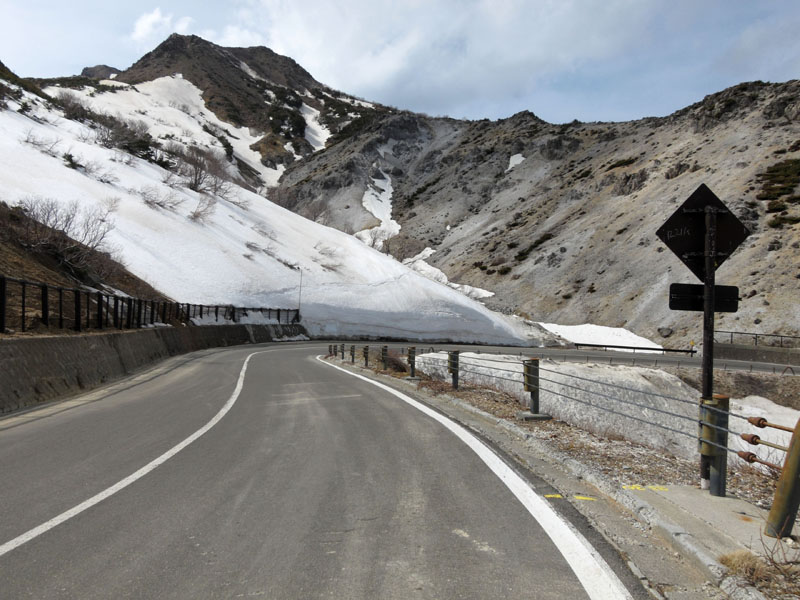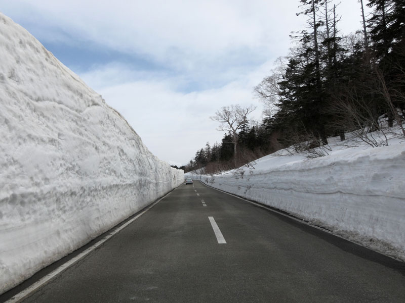 さらに豪雪地帯のため開通直後は高さ4mほどの雪の壁の間を走る。
