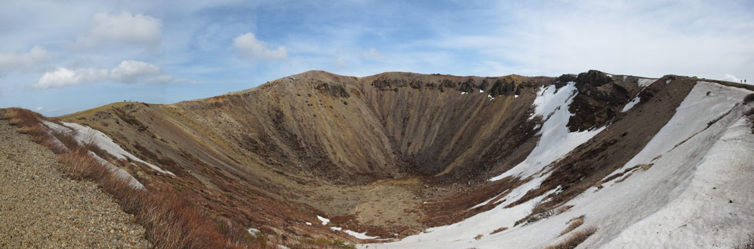 これは蔵王の御釜とともに、航空機から見ても明らかに分かる地形で、