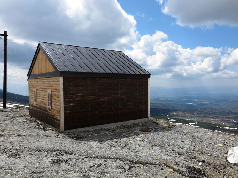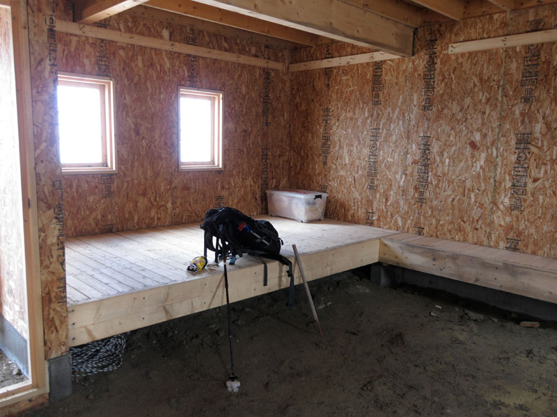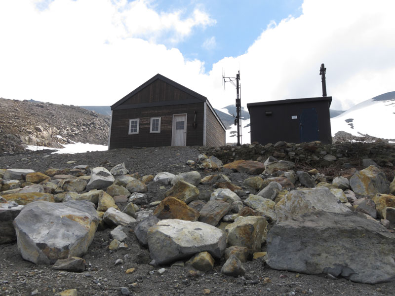 途中にある避難小屋。2008年に再建されたとか。帰りに中身を見てみたい。