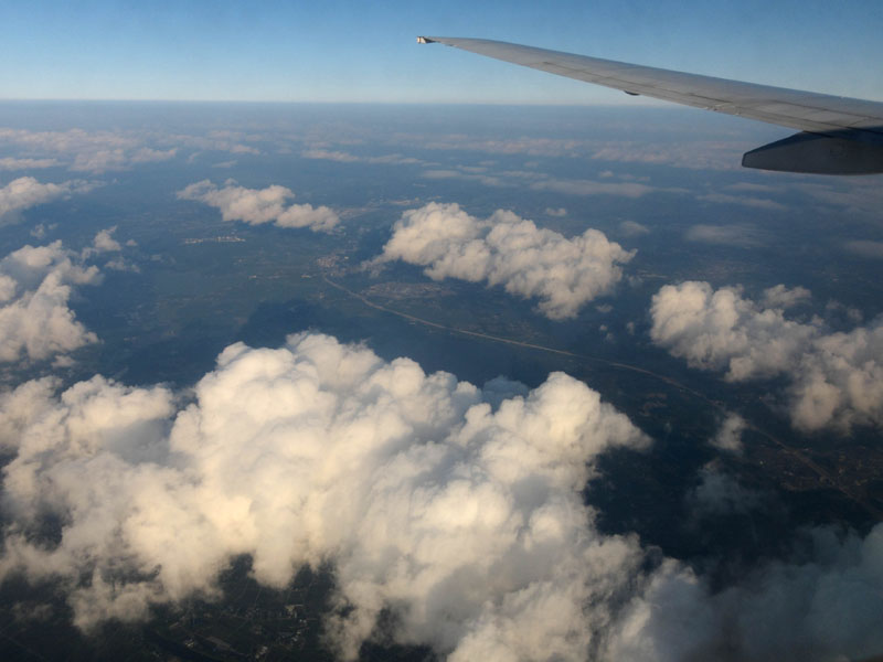 離陸するとすぐに雲の中に突っ込んでしまい、