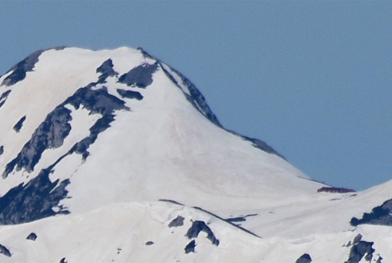 山荘から山頂を600mmで撮影するとこんな感じでわろた。