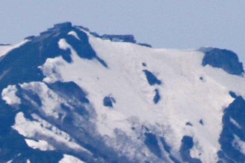 航空機から見ても山肌が白いのがよくわかる。