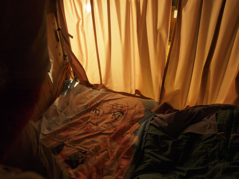 寝具は封筒型寝袋+毛布2枚+敷布団であるが、