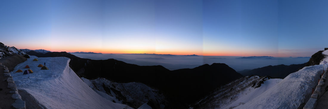 それにしても、このテント場は雪庇のすぐ横で恐ろしい感じがする。