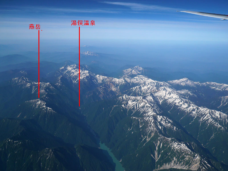 航空機から見た燕岳周辺。