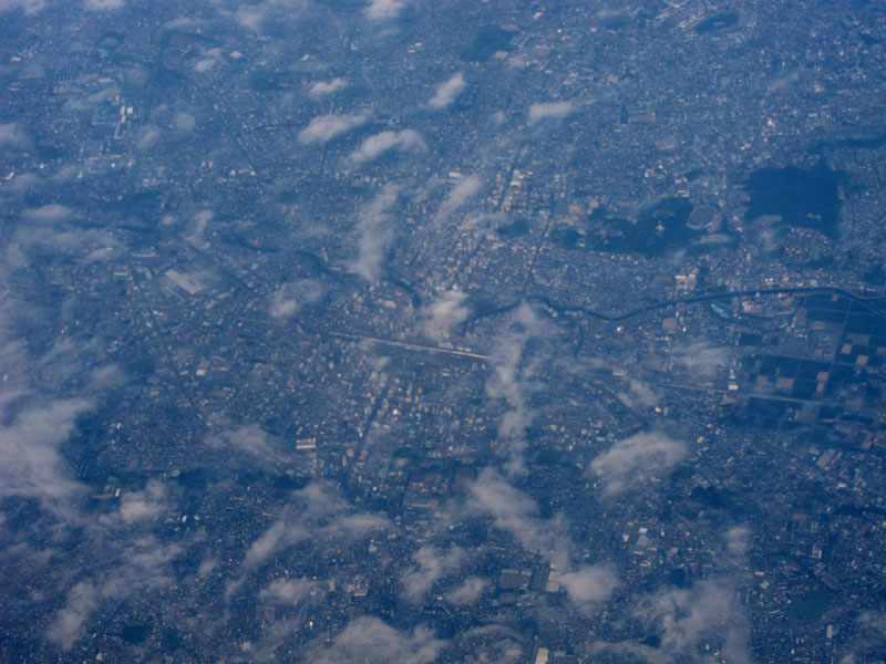 薄闇の中での進入は、夕暮れ色の空・地上の夜景・空港灯火と相まって、