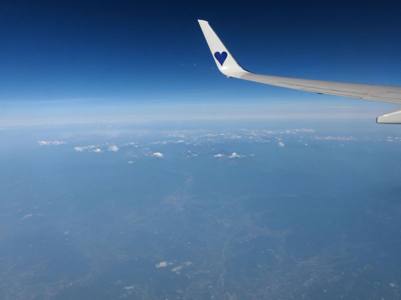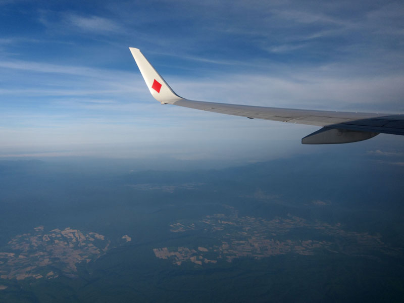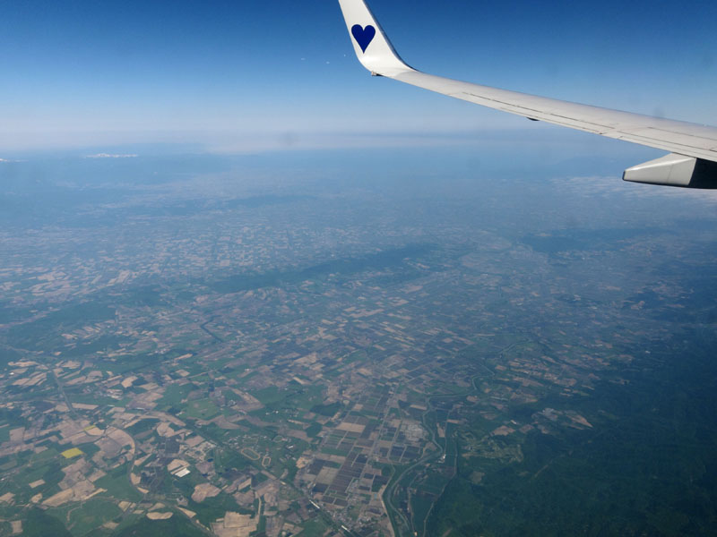 僅か距離250kmほどのフライトなので、巡航高度は低く、眺めが良さそうだ。
