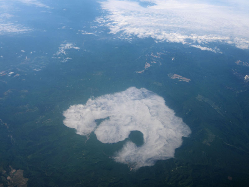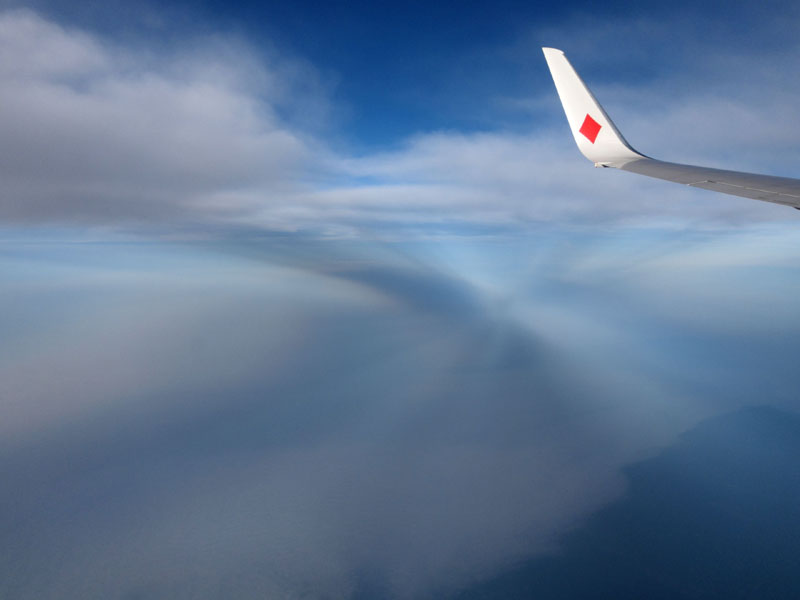 離着陸時に雲に突っ込む前後で見れるのは定番だが、巡航中に見る機会は少ない。